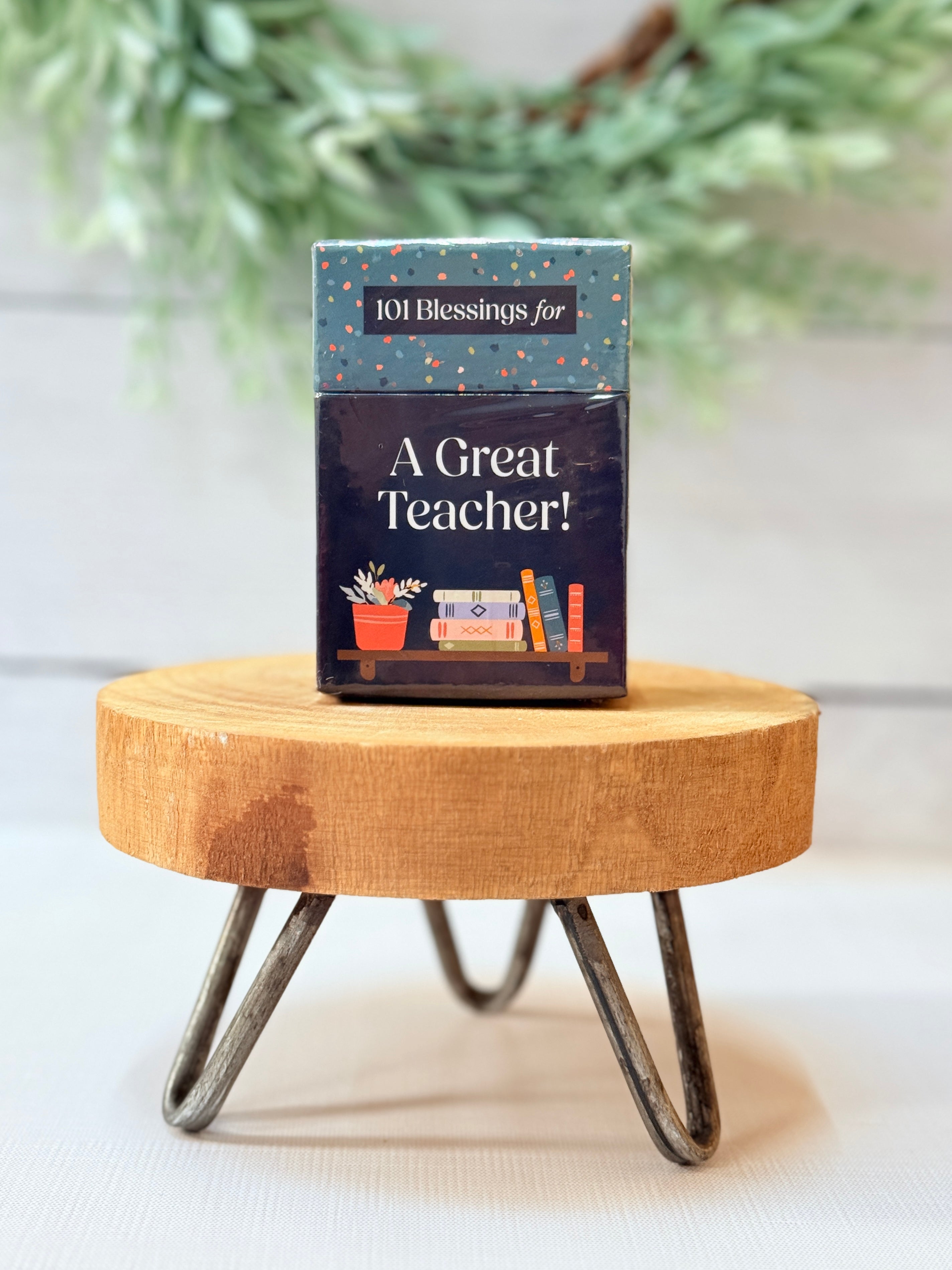 The uses for the cards in the 101 Blessings For A Great Teacher Teal Box of Blessings are endless. You can use them as bookmarks, put them up to use as Scripture memory verses, or hand them to other teachers to encourage them.