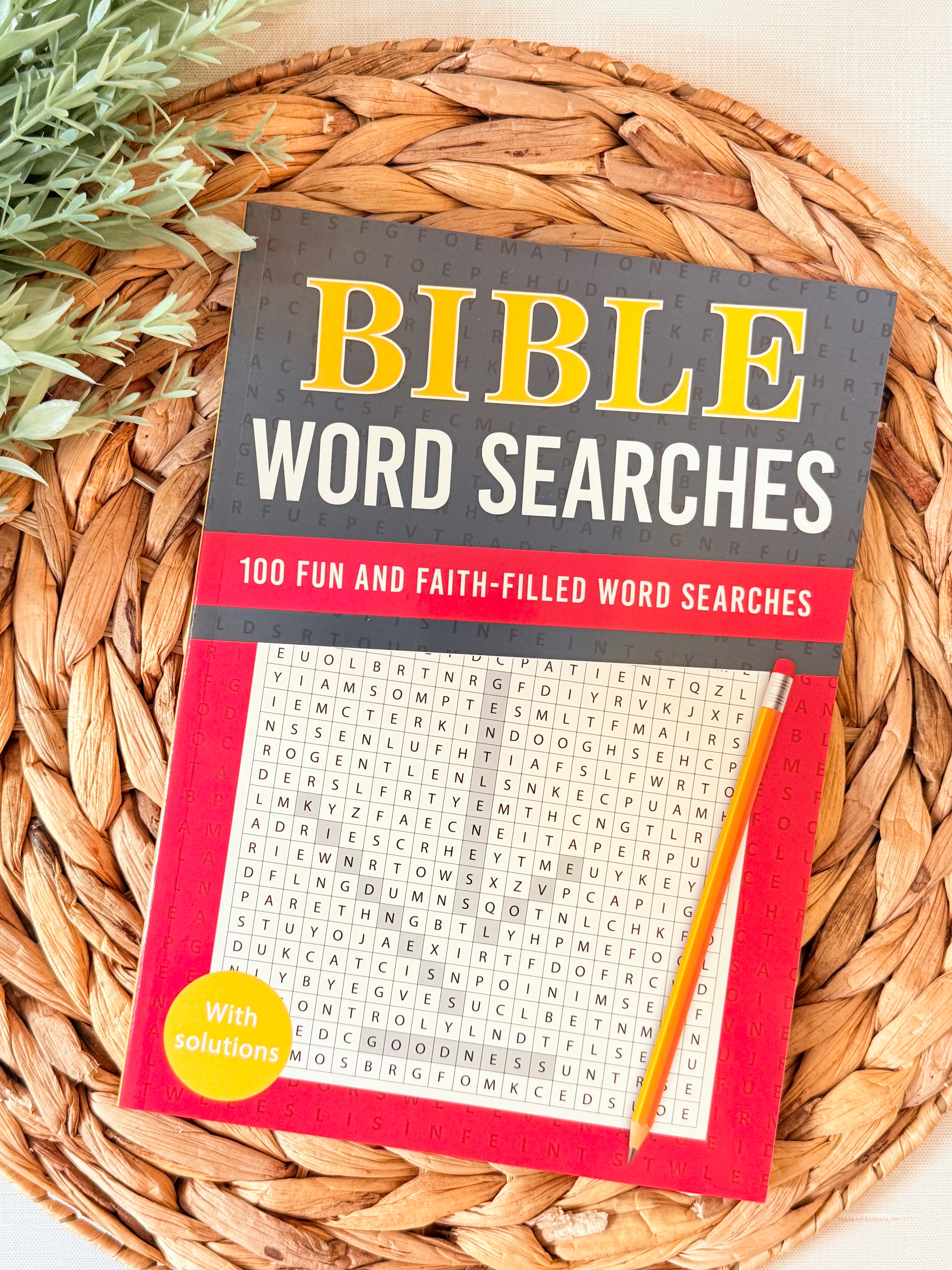 Bible Word Searches includes 100 fun, faith-filled word puzzles that cover stories and themes from Genesis to Revelation. Each search is paired with a Bible verse and bonus trivia questions, making it a screen-free activity that strengthens your mind and spirit.
