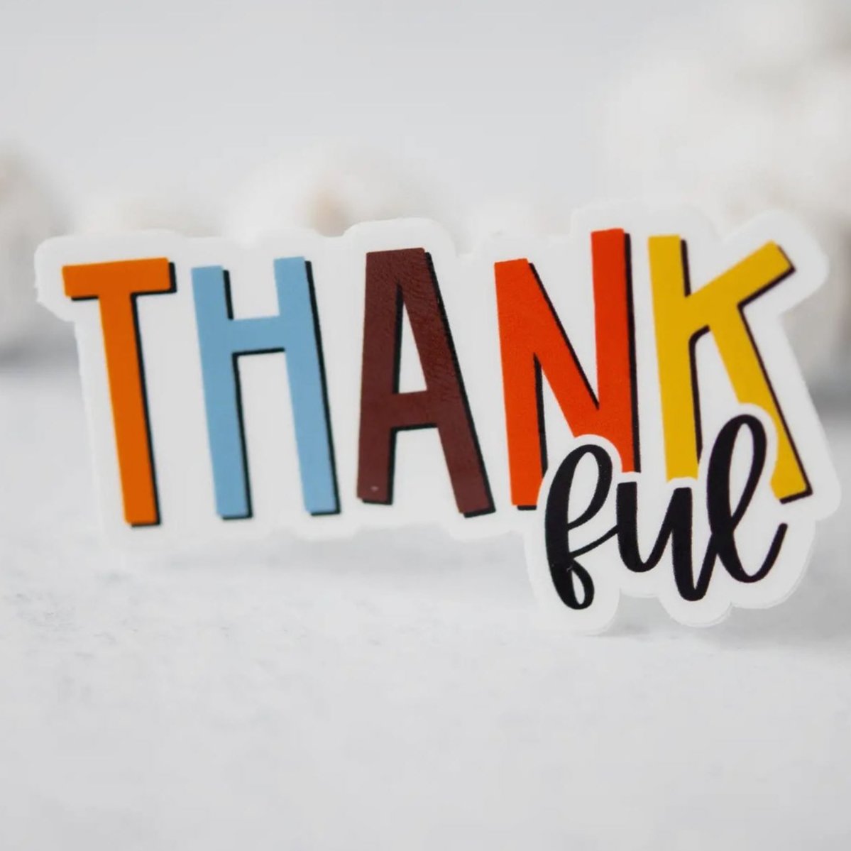 The Thankful Vinyl Sticker featuring vibrant colors, this sticker is the perfect addition to celebrate the season. Show your gratitude and add a touch of warmth to any surface. Made from high-quality vinyl, it's durable and long-lasting. Enjoy the fall season with our Thankful sticker.