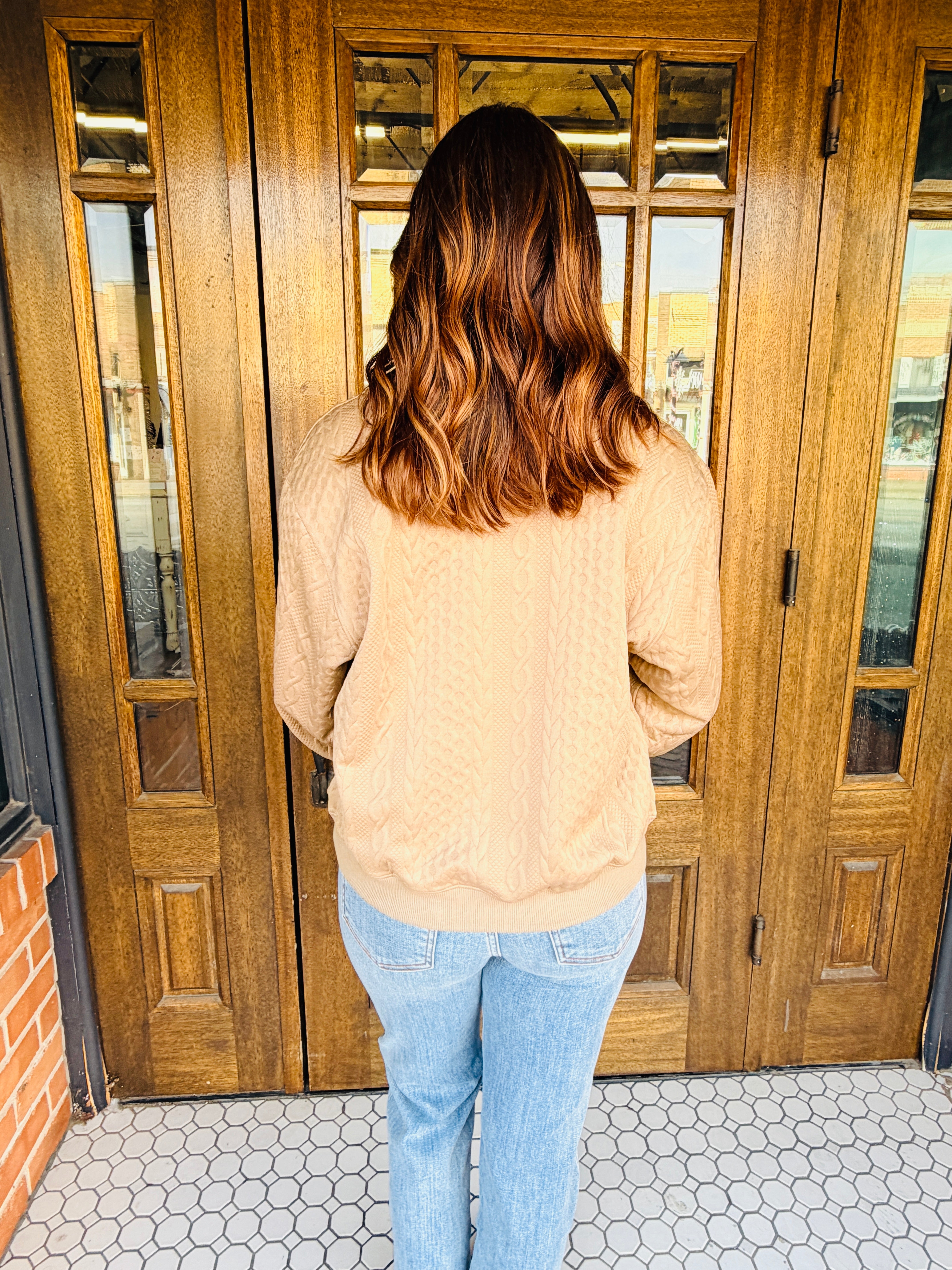 Get Me Some of That Faux Cable Knit Sweatshirt • Mocha