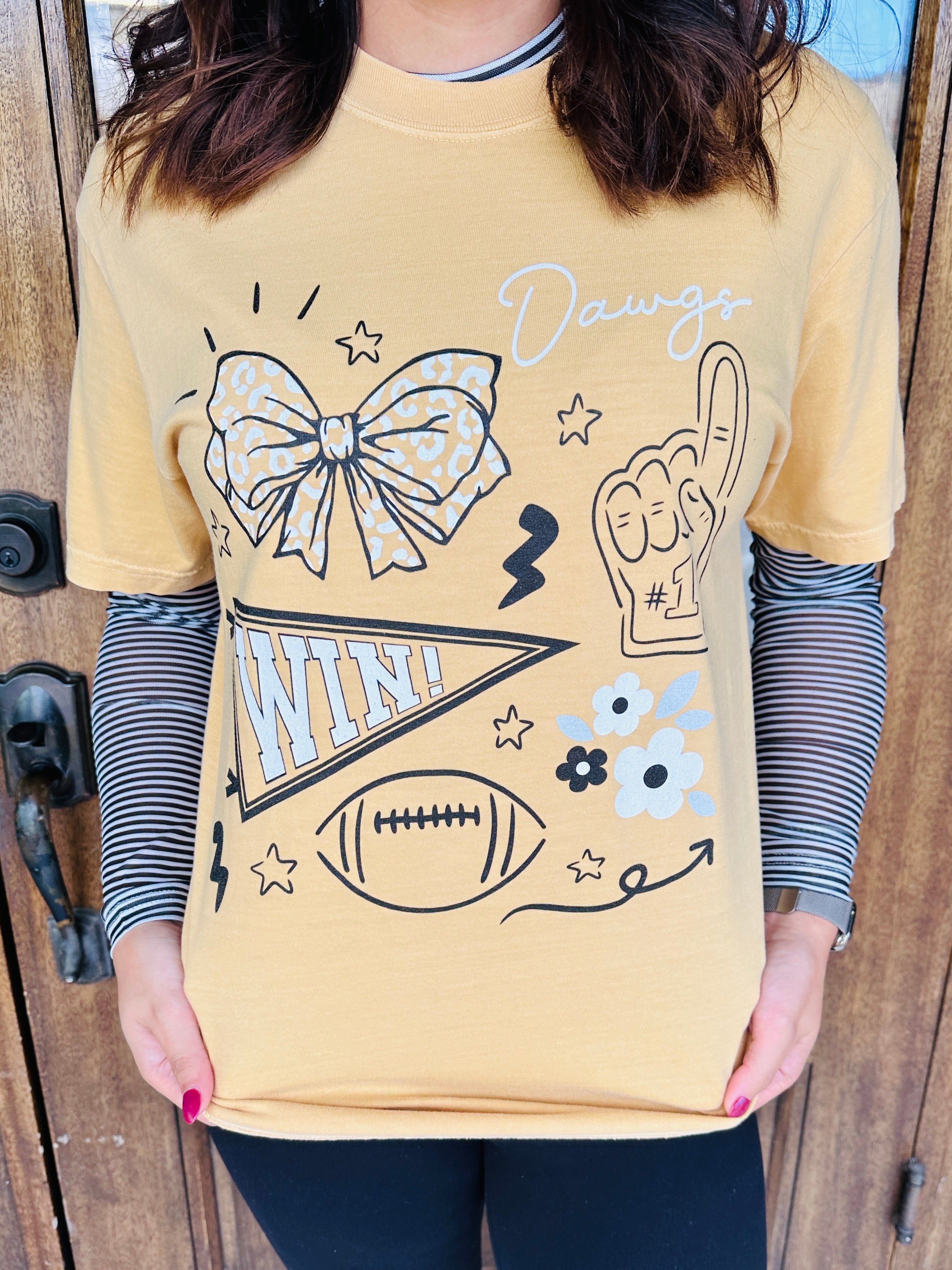 Throw on this easy graphic t-shirt and head out the door! The adorable personality of the piece allows it to be a must-have for any closet! Keep it casual with jeans and sneakers or dress this up by knotting it with a midi skirt and heels. Elevate this tee with your favorite cardigan or shacket!