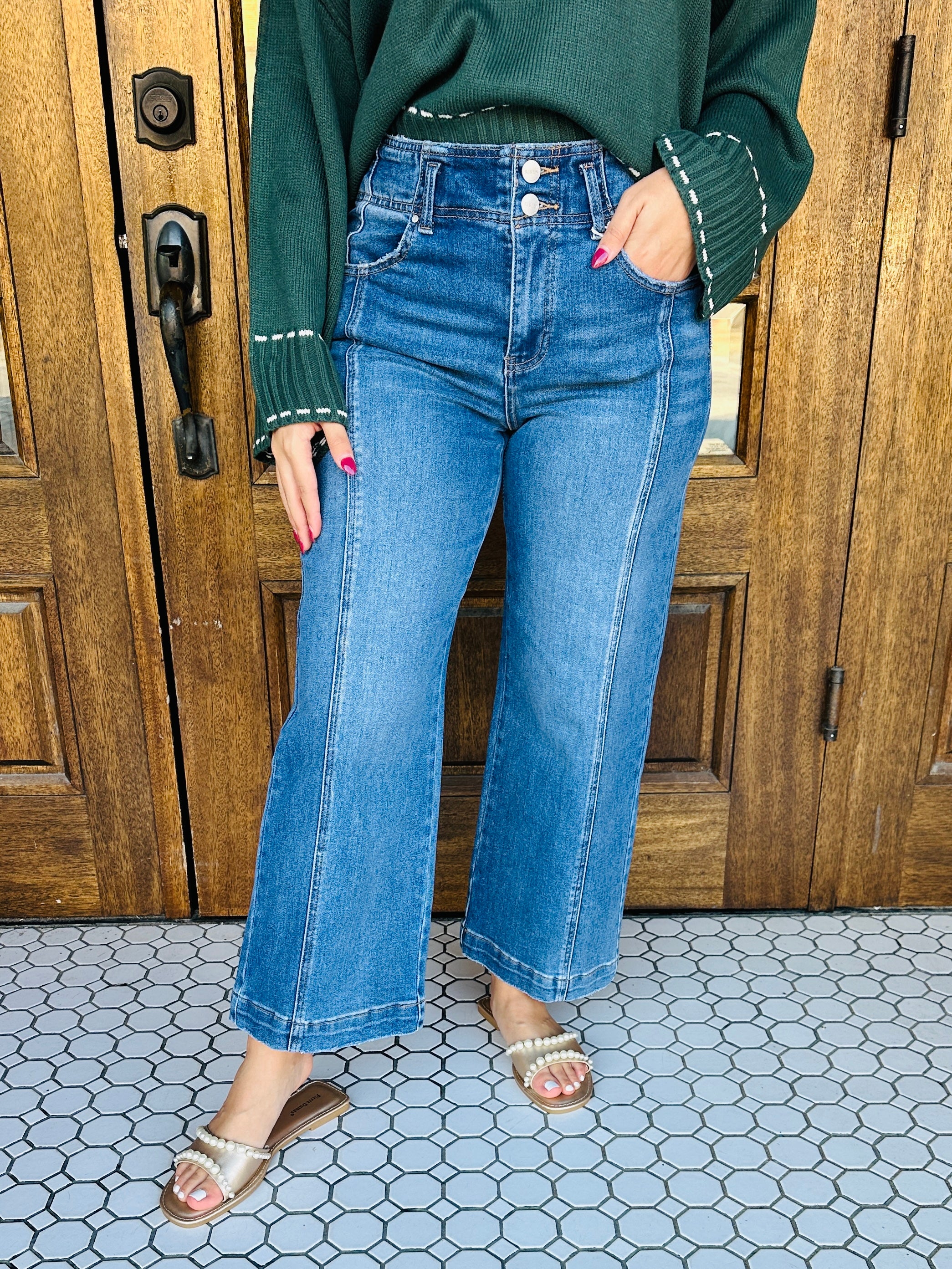 Risen What a Sight High Rise Cropped Wide Denim Jeans • Denim
