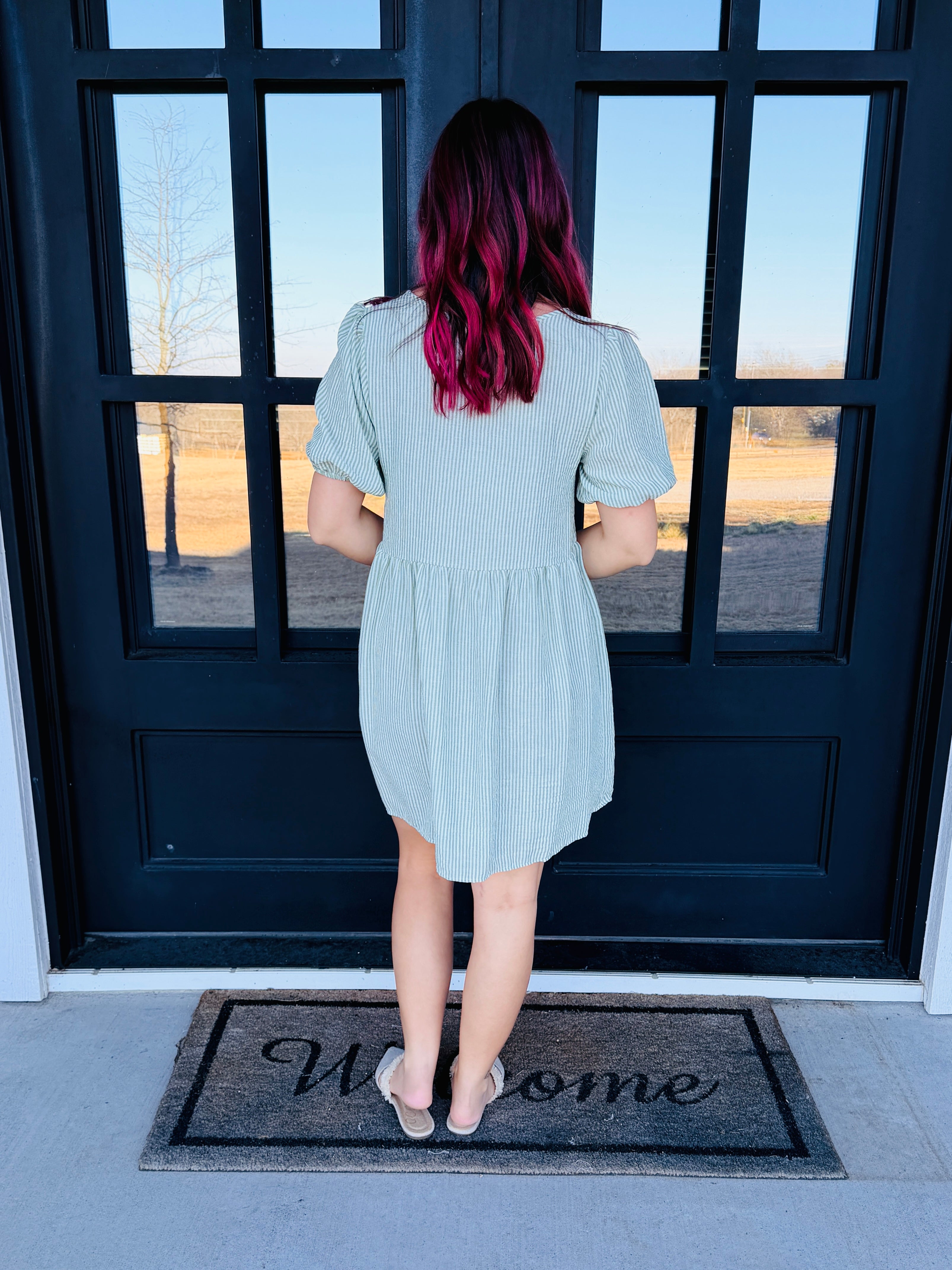 Keep Me In Mind Striped Mini Dress • Sage Green