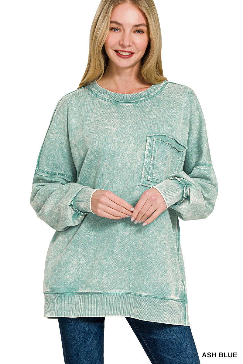 Always On Your Side Acid Washed Pullover • Ash Blue