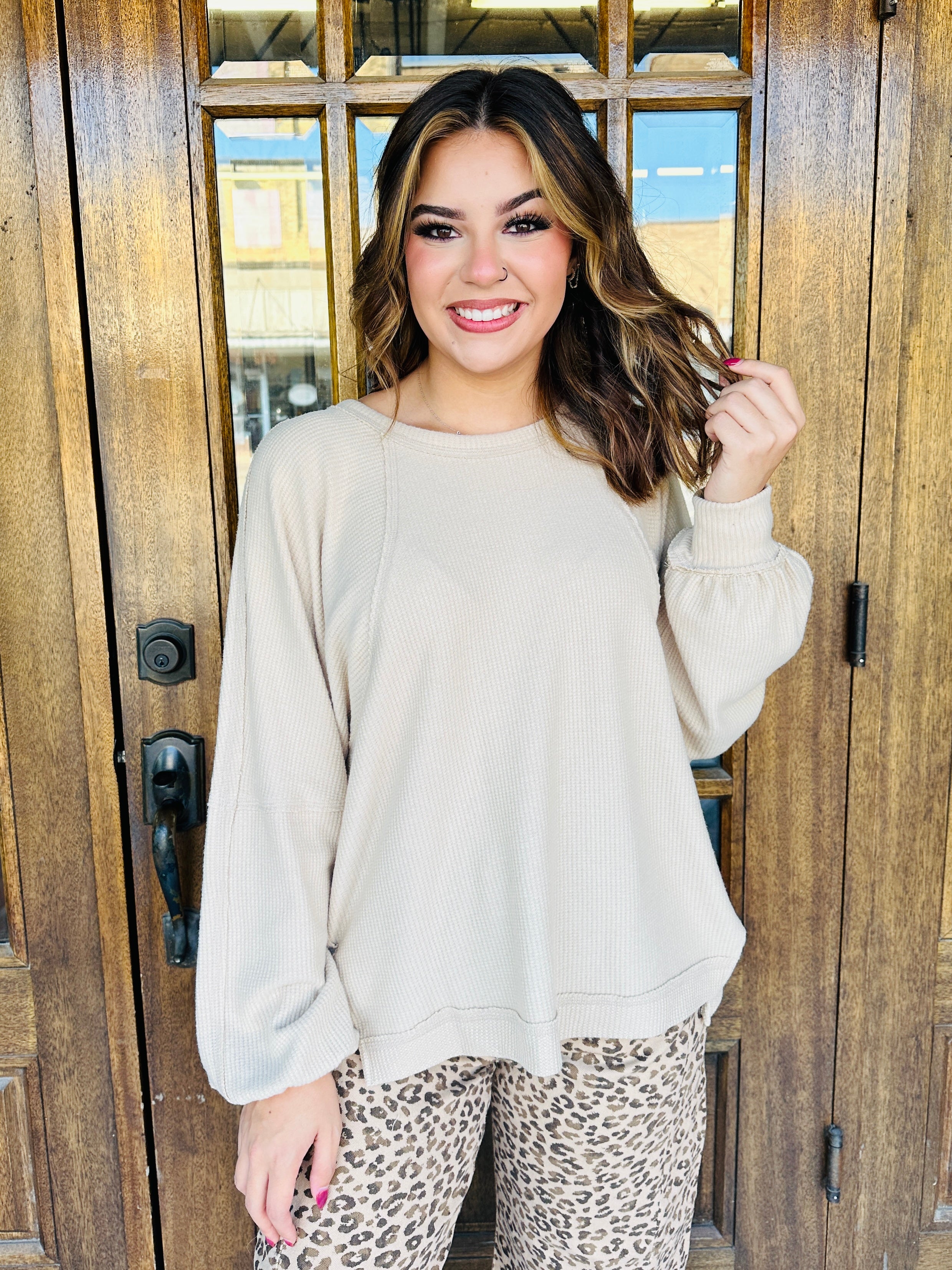 Take a Chance Brushed Waffle Long Sleeve Casual Top • Cream