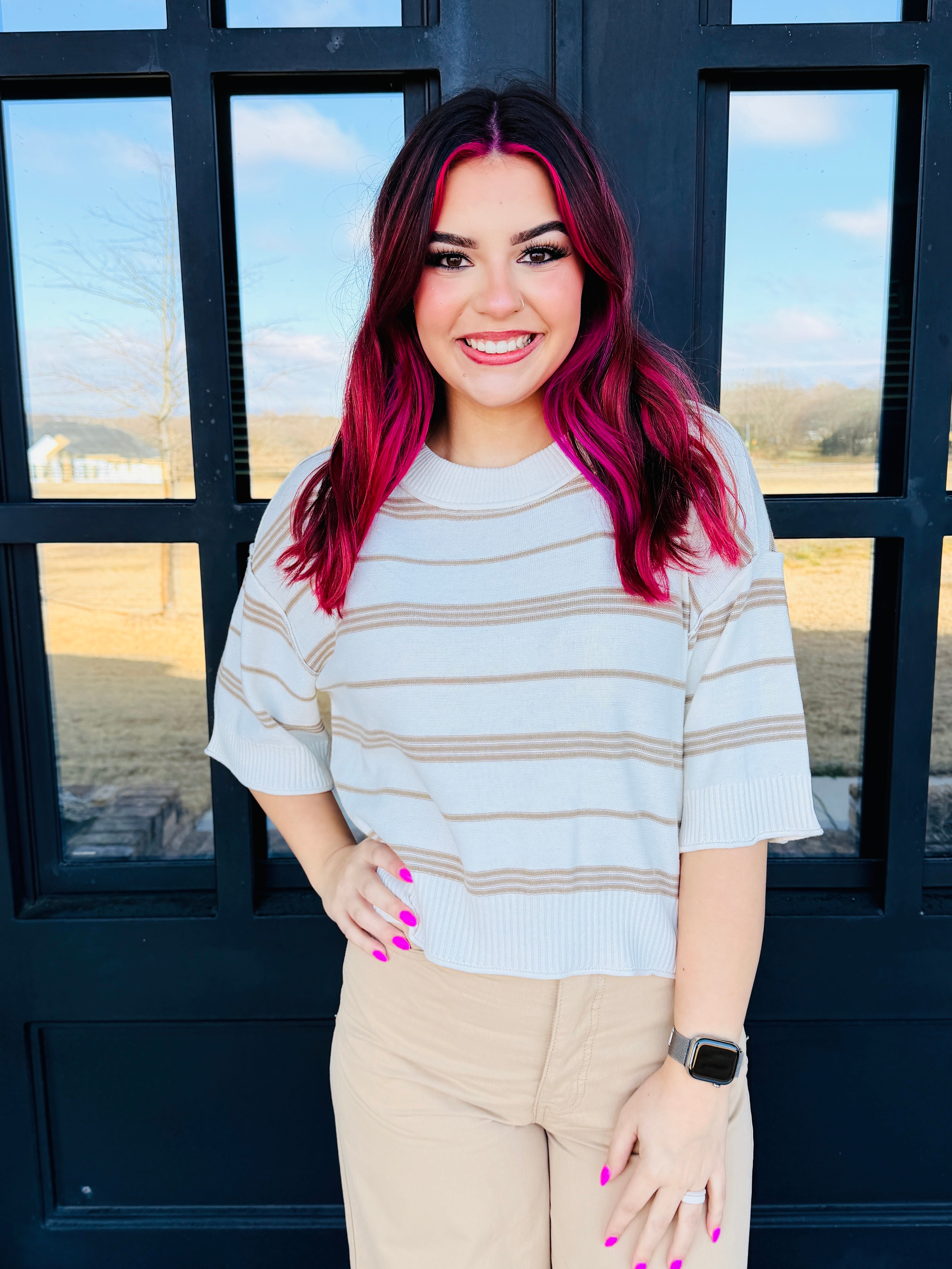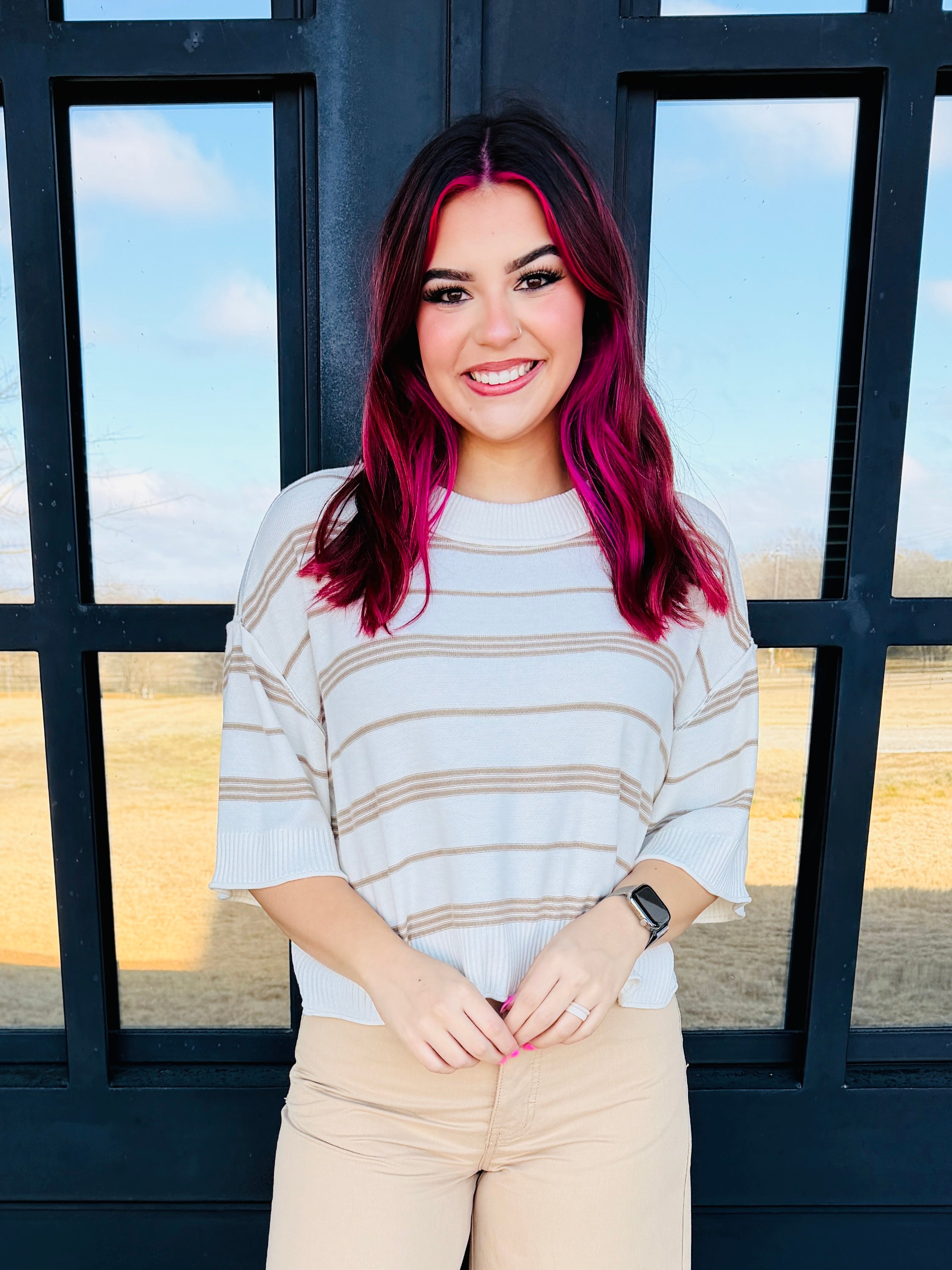 This knit striped top is the perfect blend of laid-back and put-together—ideal for workdays, weekends, and everything in between.