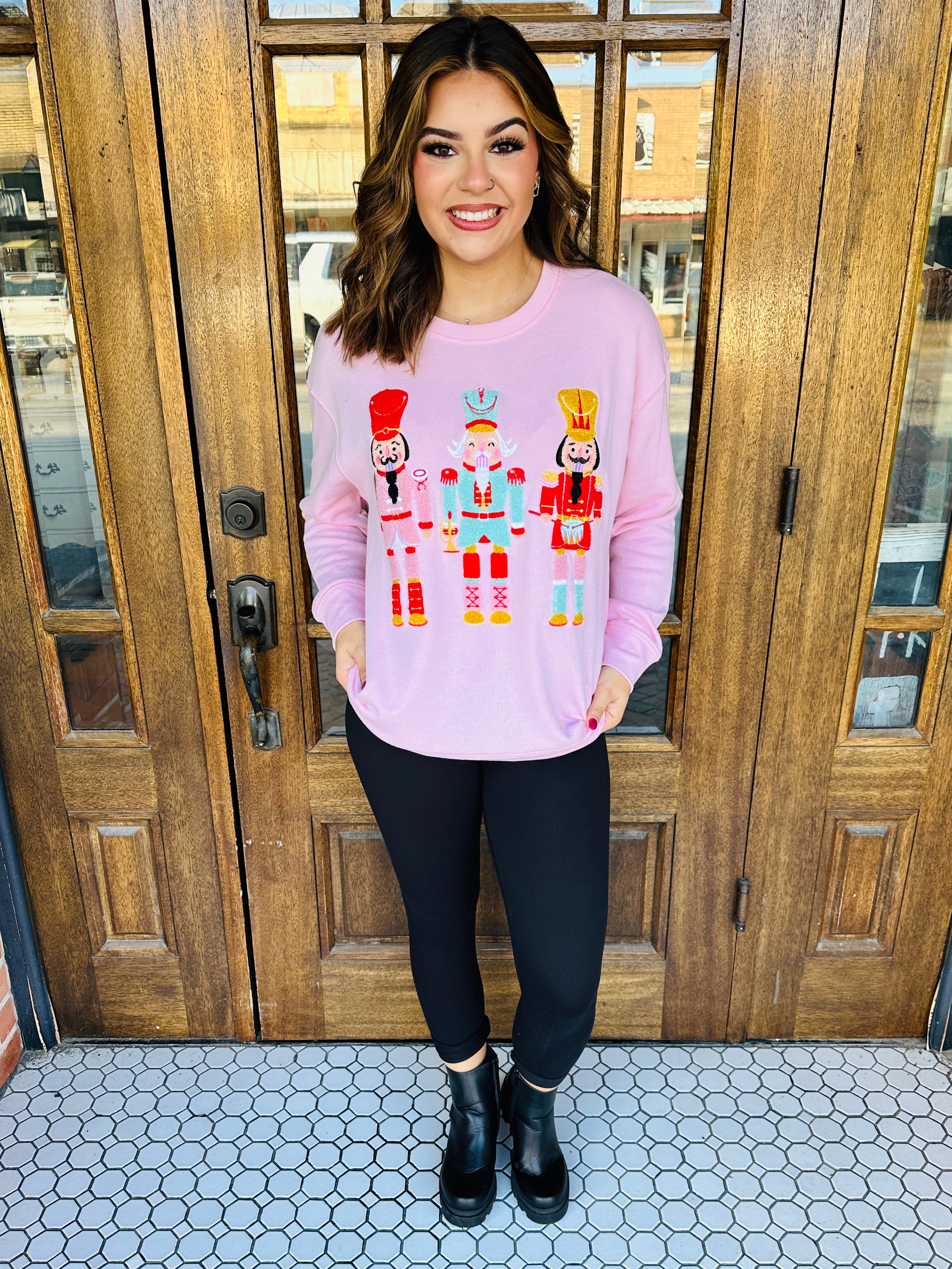 Whimsy Nutcracker Pink Crew Neck Sweatshirt